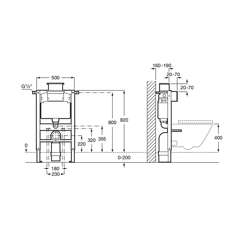 Инсталляция Roca DUPLO WC L, для установки под окно, для подвесных унитазов